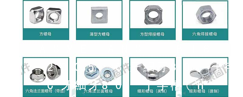 螺栓有:1、方頭螺栓,2、半圓頭方頸螺栓,3、十字槽盤頭螺釘,4、內六角沉頭螺釘,5、方螺母C級,6、蝶形螺母,7、六角頭螺栓,8、十字槽盤頭自攻螺釘。大小有M18、M6、M8、M16、M10、M12、M14、M20等型號。通常用