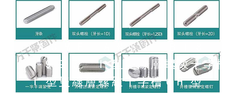 1)開槽普通螺釘多用于較小零件的連接。它有盤頭螺釘、圓柱頭螺釘、半沉頭螺釘和沉頭螺釘。盤頭螺釘和圓柱頭螺釘的釘頭強度較高,瑁在普通的部件連接上;半沉頭螺釘的頭部呈弧形,安裝后它的頂端略外露,且美觀光滑,一般用