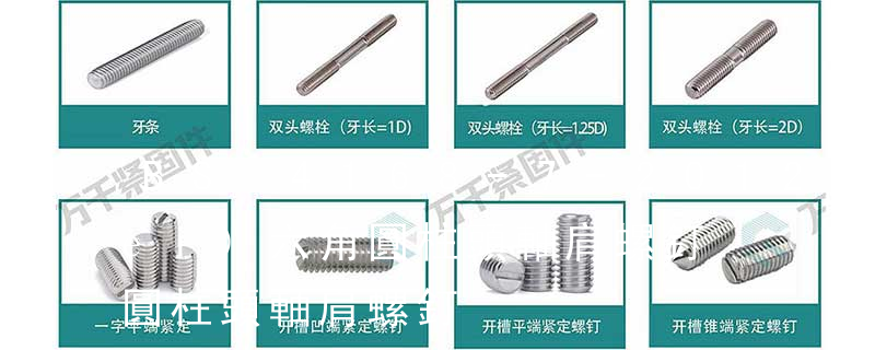 十二角螺栓、地角螺栓、膨脹螺栓、太陽能用雙段牙螺栓、內(nèi)六角圓柱頭螺絲、內(nèi)六角沉頭螺絲、半圓頭內(nèi)六角螺絲、內(nèi)六角圓柱頭軸肩螺絲、塞打螺絲、梅華槽螺絲、內(nèi)六角緊定螺絲、一字緊定螺絲、方頭緊定螺絲、滾花頭螺絲、蝶 有螺紋。內(nèi)六角螺絲軸肩是螺絲的一個(gè)重要部位,其需要有螺紋部分來增加摩擦力,因此是有螺紋的。內(nèi)六角圓柱頭軸肩螺釘也叫內(nèi)六角螺絲,也叫內(nèi)六角螺栓。其頭部是內(nèi)六角頭的。