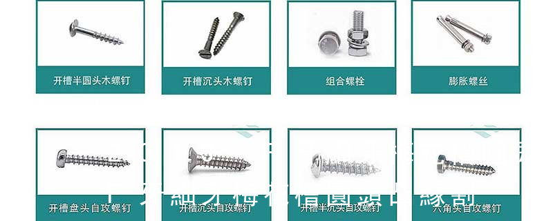 (鐵板牙自攻螺絲) B-2: Plastic Tapping Screw. (塑膠用,自攻螺絲) C: Wooden Screw : 木工螺絲 D: Drywall Screw :水泥墻螺絲 E: Self Drilling Screws鉆尾螺絲(不銹鋼鉆尾螺絲,復合材料鉆尾螺絲) F:膨脹螺絲,四片膨脹螺絲又 3.螺釘:也是由頭部和螺桿兩部分構成的一類緊固件,按用途可以分為三類:機器螺釘、緊定螺釘和特殊用途螺釘。機器螺釘主要用于一個緊定螺紋孔的零件,與一個帶有通孔的零件之間的緊固連接,不需要螺母配合(這種連接形式稱為螺釘連接,也屬于