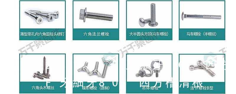1.機螺釘 2.自攻螺釘 3.鉆尾螺釘 4.墻板釘 5.纖維板釘 6.木螺釘7.六角木螺釘 8.不脫出螺釘 9.組合螺釘 10.微型螺釘 11.家具螺釘 12.電子螺釘頭型:1.六角頭(hexagon head) 2.六角頭法蘭面(hexagon head with flange) 3.